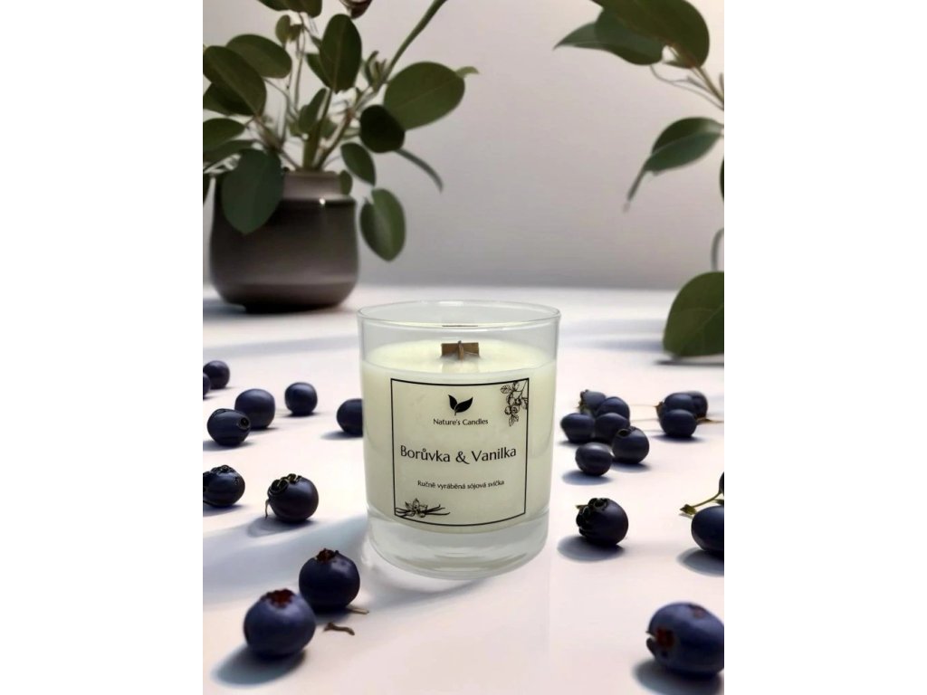 Sójová svíčka s vůní Borůvky & Vanilky, ovocná směs, ve které dominují převážně borůvky a jahody doprovázené sladkou vanilkou.