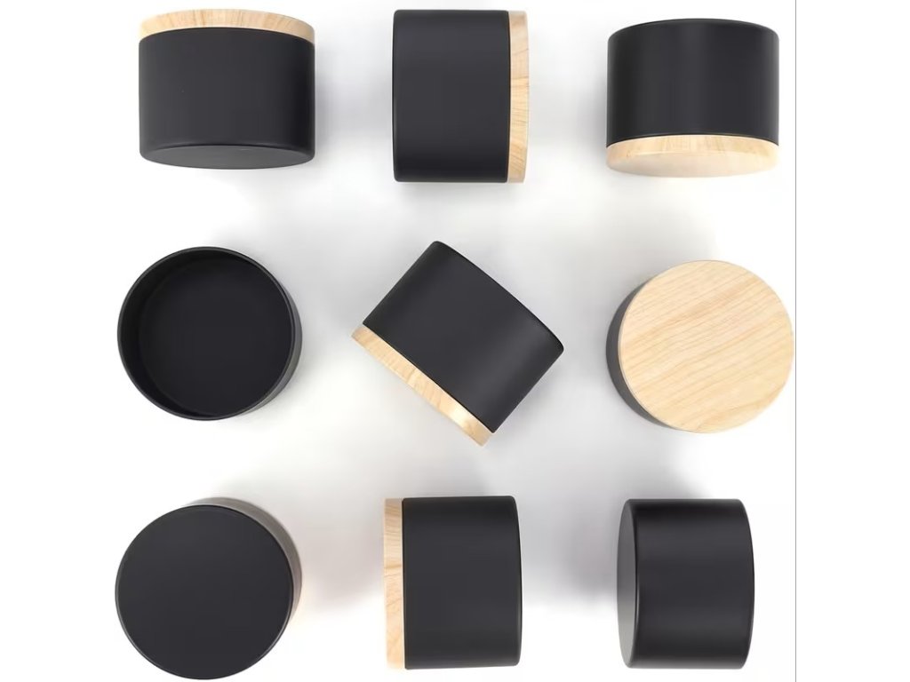 Elegantní kovová nádoba na svíčku v černé barvě je ideální volbou pro DIY výrobu svíček, skladování drobností nebo jako stylový obal na ručně vyráběné dárky. Minimalistický design se hodí do každého interiéru a působí čistě a profesionálně.